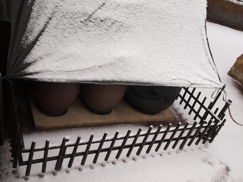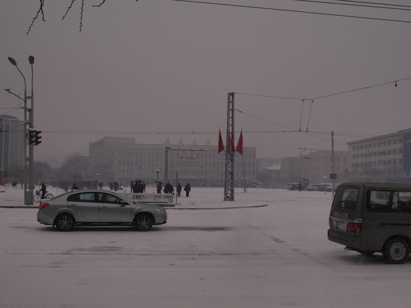 主席様の生家を見学し終わっても、雪の降り方は全然弱まりません。