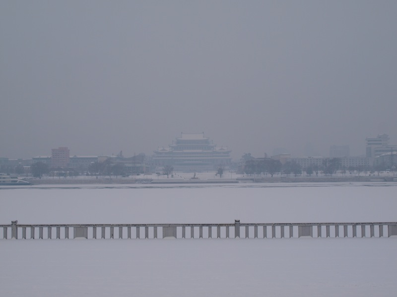 平壌市内に入った頃には既に17時、節電(迫真)のためか市街地全体的に暗くてまともな写真が撮影できません。
