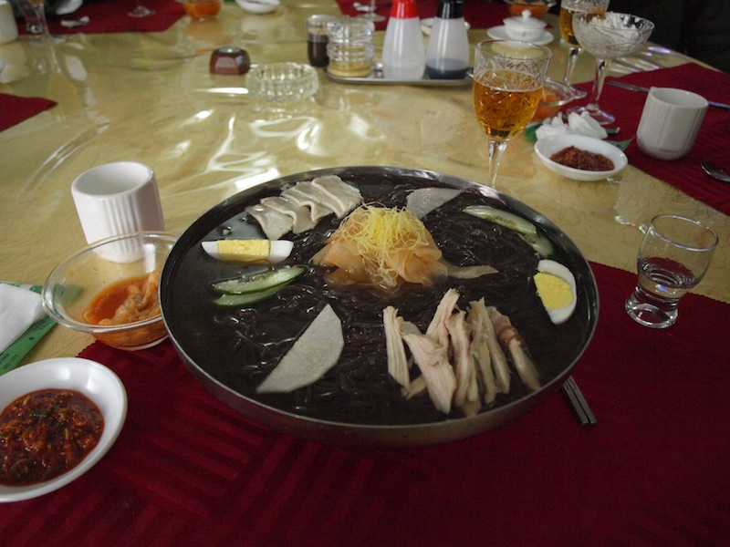 ビールも一緒に出てきたのですが、有名な大同江ビール(テドンガンメッチュ)ではなく、平壌の地ビールとのことでした。これも普通に美味しかったです(小並感)