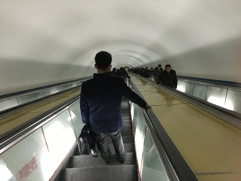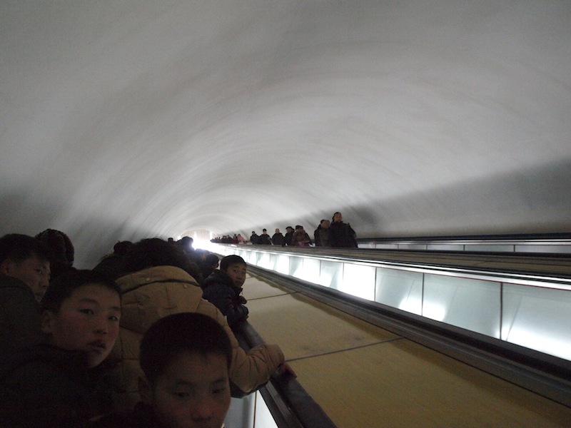 平壌地下鉄は核シェルターを兼ねているので、とにかく深い。そしてエスカレーターが長い(迫真)
