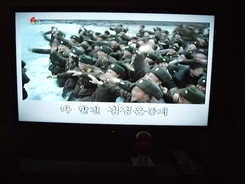 近くにいたヨーロッパ系の真冬(外気温氷点下5度)なのに北朝鮮国旗入りの半袖Tシャツを着ている小太りのハゲたおじさんが、超ノリノリで「パンガプスムニダ」(下記参照)を歌っているのを見かけて、否が応でも北朝鮮渡航への期待感が高まりますw