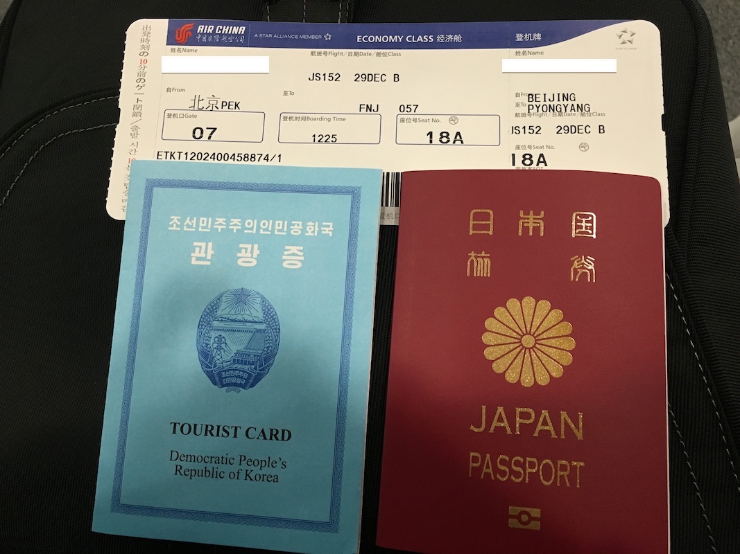 北朝鮮の観光ビザと北京平壌の航空券とパスポート。