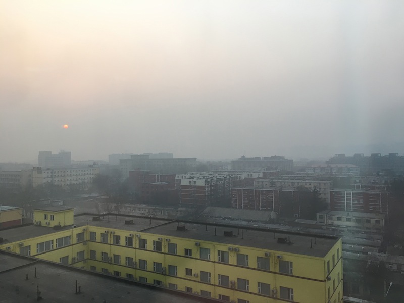 北京のホテルの窓から。空気がとっても美しいですね(白目)